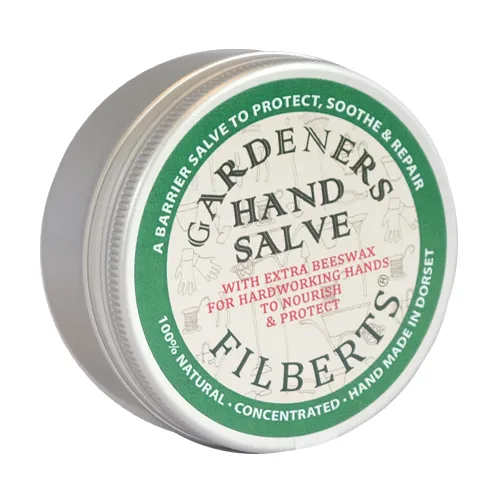 Gardeners Hand Salve is a concentrated salve is designed to protect hands exposed to harsh conditions. Nourishing oils, including UK grown rapeseed (a natural source of Vitamin E) are combined with higher levels of protective beeswax (25%) than found in our regular Hand Salve (21%), to act as a barrier. Great for rough skin and minor splits around the fingernails.